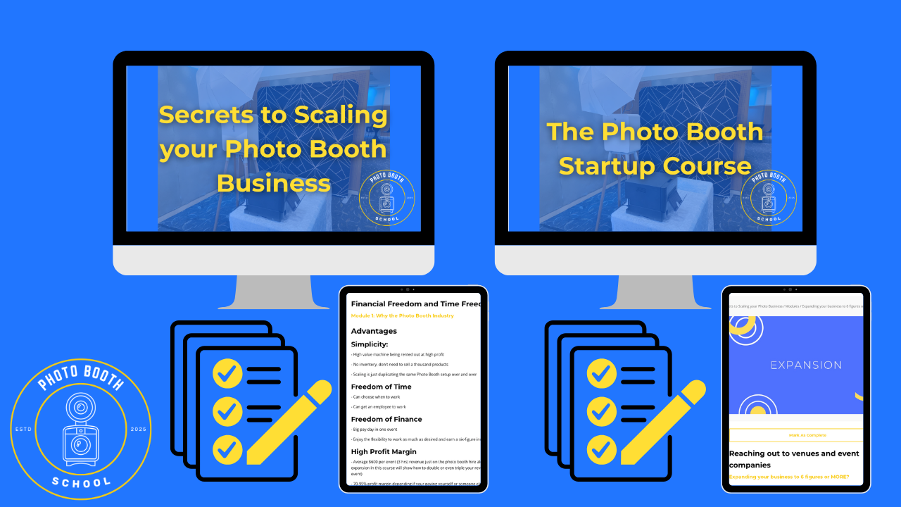 This startup course is the best way to start a Photo Booth Business. Follow the blueprint and avoid all the costly mistakes. Expansion course also included.Â